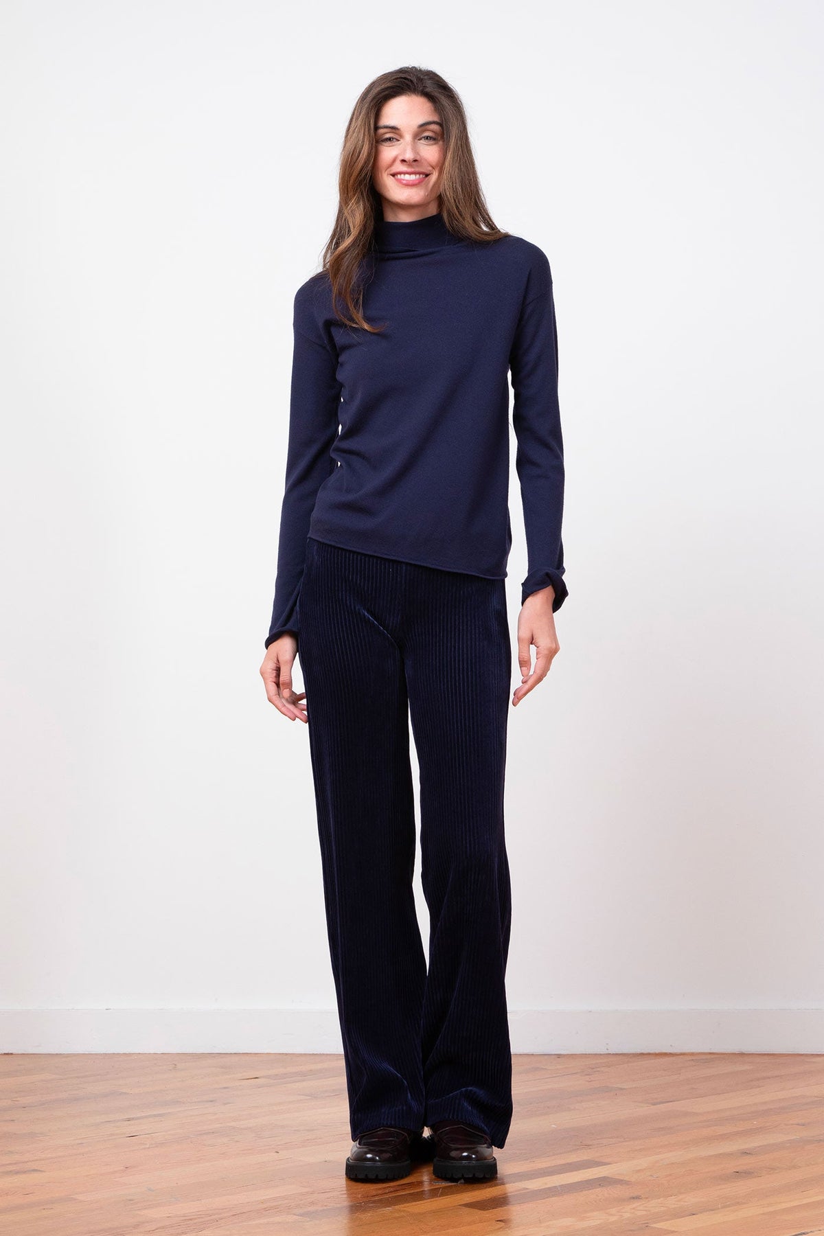 The Flavia Corduroy pant offers a full-length palazzo silhouette that combines comfort and style with its loose, flowing cut. Crafted from soft and luxurious corduroy, it ensures a cozy feel ideal for everyday wear. With a 31” inseam and true-to-size fit, these pants provide effortless elegance and movement. For care, hand wash or use a delicate cycle with cold water to maintain fabric quality. Perfect for those seeking both comfort and a refined look.