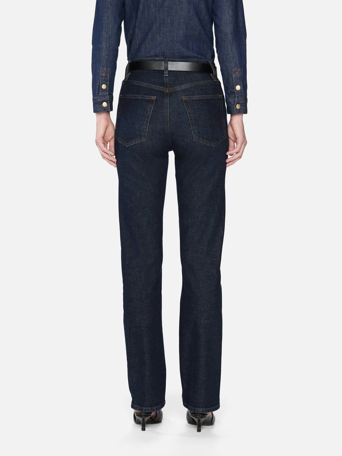The Ruler - Taboo offers a full-length inseam designed to elongate the legs with a high-rise fit that contours the hip and thigh. It transitions into a slim straight-leg silhouette, blending a tailored structure with comfort. Crafted from ultra-soft Structured Stretch denim, it delivers subtle stretch for ease of movement while maintaining a classic, rigid appearance, perfectly balancing modern wearability and vintage style.
