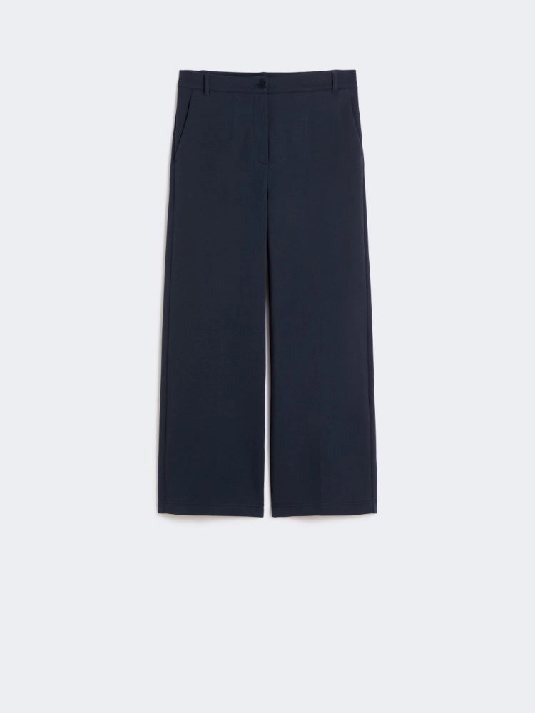 Double-faced jersey construction delivers exceptional durability and refined structure to these straight-fit trousers. The cropped silhouette hits at the ankle, creating a modern proportion that works seamlessly with both sneakers and heels. Navy's versatility makes these an essential wardrobe staple—pair them with everything from crisp button-downs to oversized sweaters. The jersey fabric offers subtle stretch and breathability, ensuring all-day comfort without compromising the polished aesthetic.