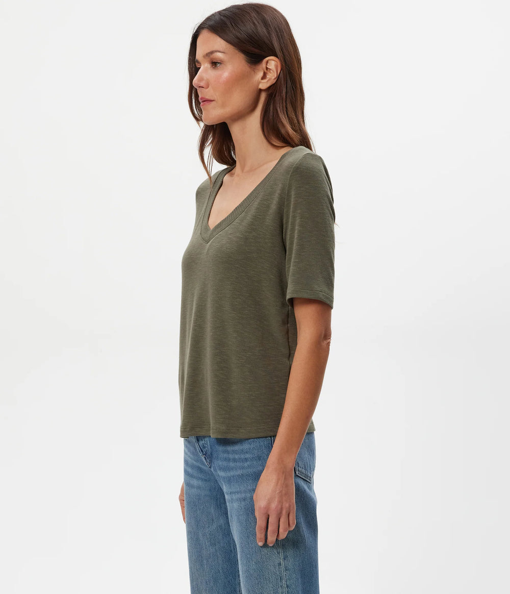 Vera V Neck Tee - Charcoal