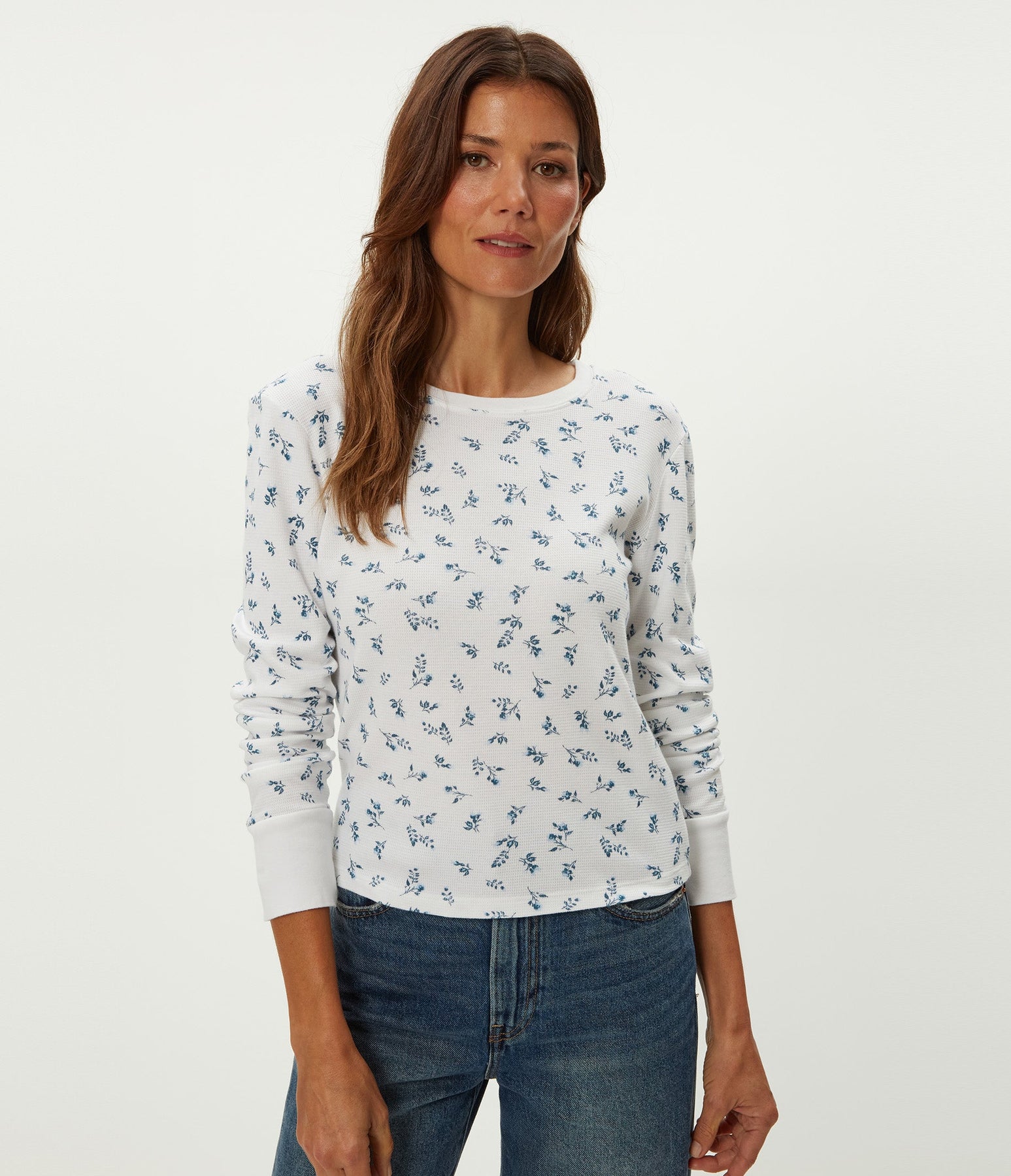 The Palmer Printed Crop Tee is an essential layering piece that effortlessly transitions between seasons. Crafted from ultra-soft thermal fabric, this cropped silhouette features an all-over floral print that adds visual interest to any outfit. The body-hugging fit flatters your frame while maintaining comfort throughout the day. Style it as a standalone statement piece or layer it beneath your favorite knit sweater for added dimension and warmth. A versatile wardrobe staple that delivers both comfort and contemporary style.