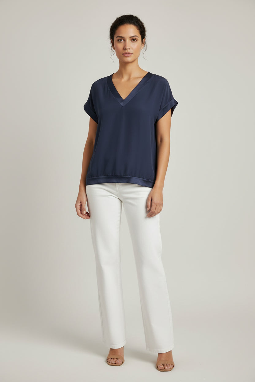 V Neck Short Sleeves Silk Top