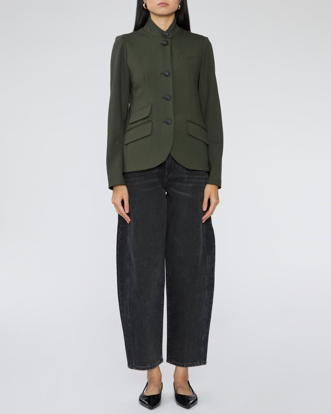 Knit Blazer with Tailored Lapel and Patch Pockets - Navy