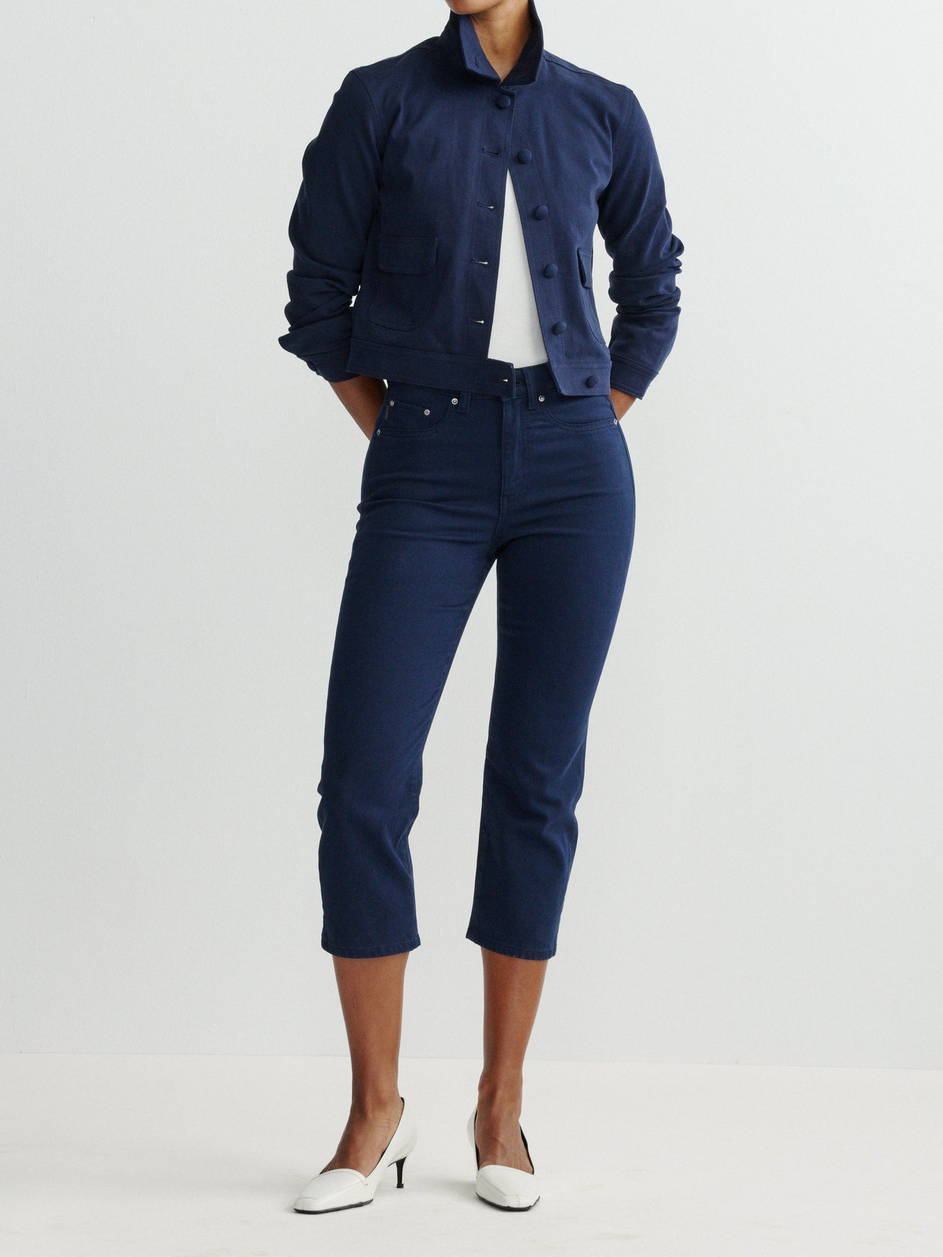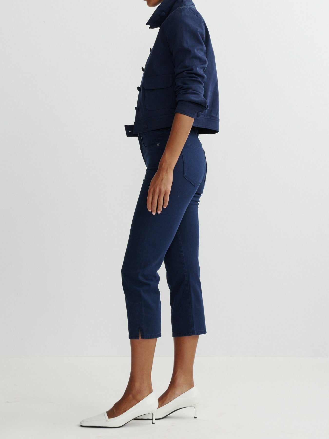 The Kristy Capri High Rise features DL Twill, a refined flat weave crafted from certified cotton blended with lightweight comfort stretch technology. This combination delivers a superior fit that moves with you throughout your day, offering the durability of classic construction with modern comfort performance. The high-rise silhouette provides flattering coverage and support, making this capri an essential piece for any war