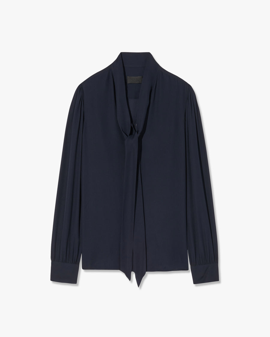 Elevate your style with the Carina Top. Crafted from lightweight, non-stretch silk chiffon, this top features a charming bow collar, button placket, and long sleeves with button cuffs. The floral print adds a touch of femininity. Made in the USA with imported materials, it's perfect for any occasion.