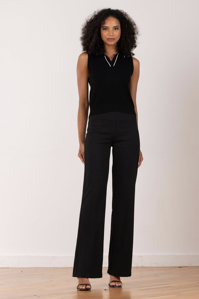 The FLAVIA Seersucker Pant delivers effortless elegance through its full-length palazzo silhouette. The generously cut legs create a fluid drape that moves gracefully with you, offering exceptional comfort without compromising style. Seersucker's textured weave provides natural breathability and a refined aesthetic, making this piece an ideal choice for warm-weather dressing. The relaxed fit flatters all figures while maintaining a polished, sophisticated appearance.