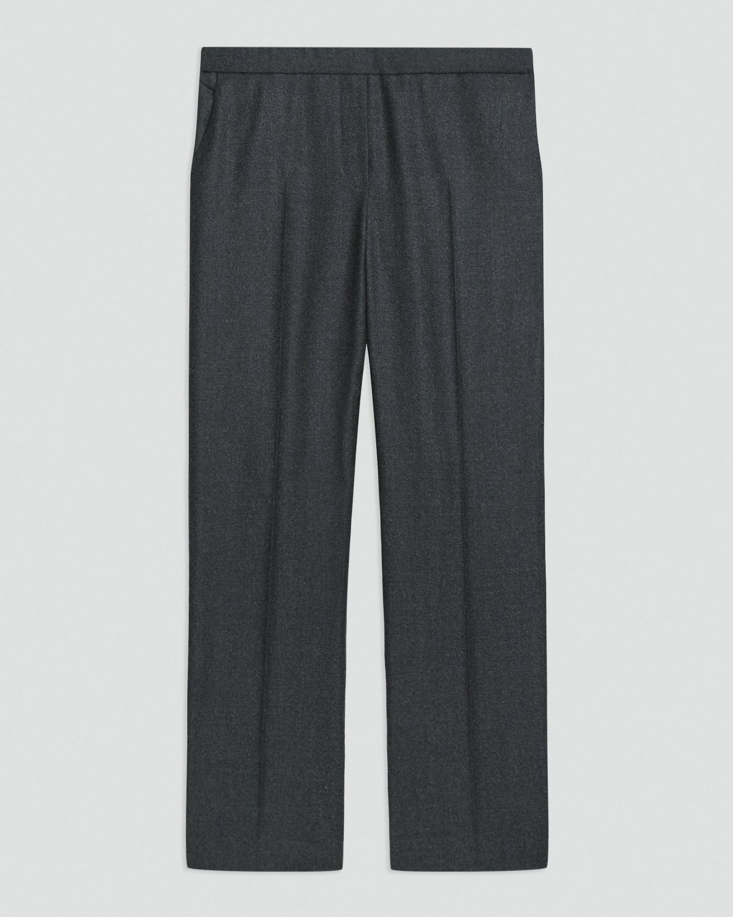 Step into comfort and style with this Treeca Pull-On Pant in Sleek Flannel! The easy, elastic waistband and mock fly make this an effortless option for any occasion. Made from soft, lightweight Italian wool flannel, these pants offer a sophisticated look without compromising comfort.