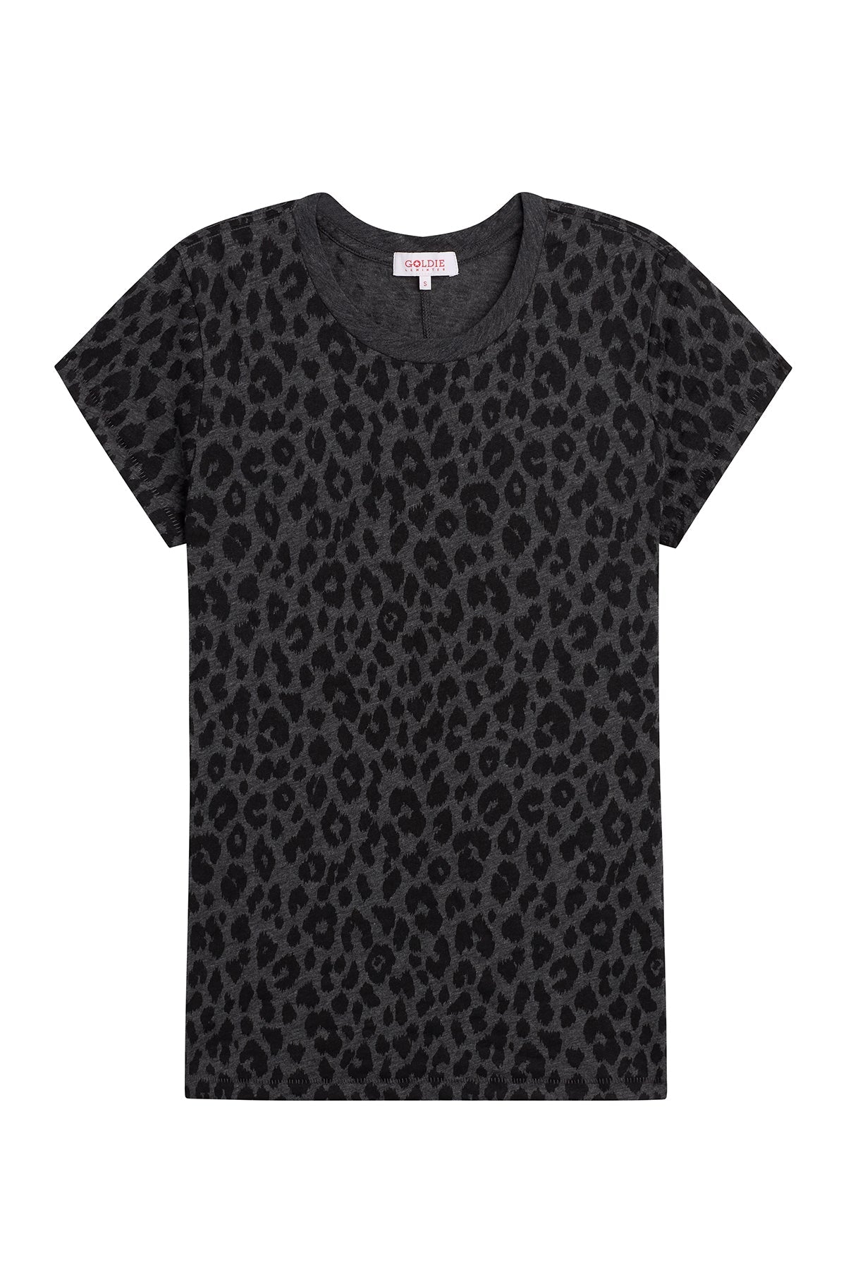Update your wardrobe with the Leopard Ringer Classic Tee. This statement piece features a bold leopard print and is available in sumptuous shades of wine and charcoal. With vertical railroad-stitch seaming in the back, it offers both style and comfort. Perfect for adding a touch of pizzazz to any outfit.