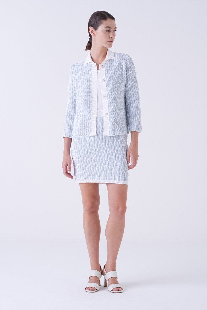 This two-tone chiné cotton jacket exemplifies contemporary tailoring with its sophisticated color interplay and refined construction. The natural fiber composition provides breathability and durability, while the textured weave adds dimensional interest to any ensemble. Its versatile design transitions seamlessly from layered styling to standalone wear, making it an essential wardrobe staple.
